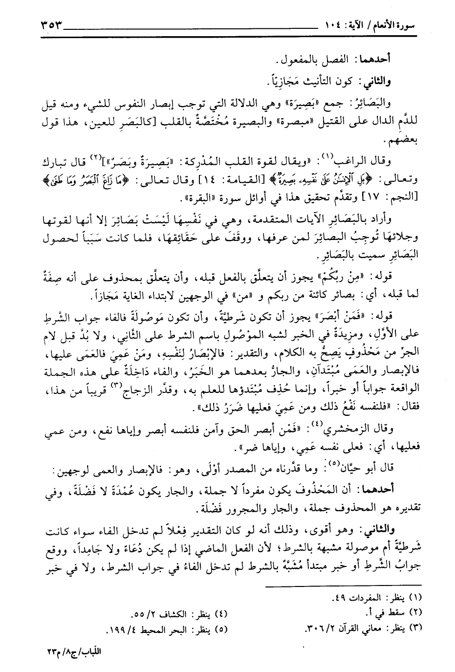 قال أبو حيَّان: وما قدَّرناه من المصدر أوْلَى، وهو فالإبصار والعمى لوجهين: