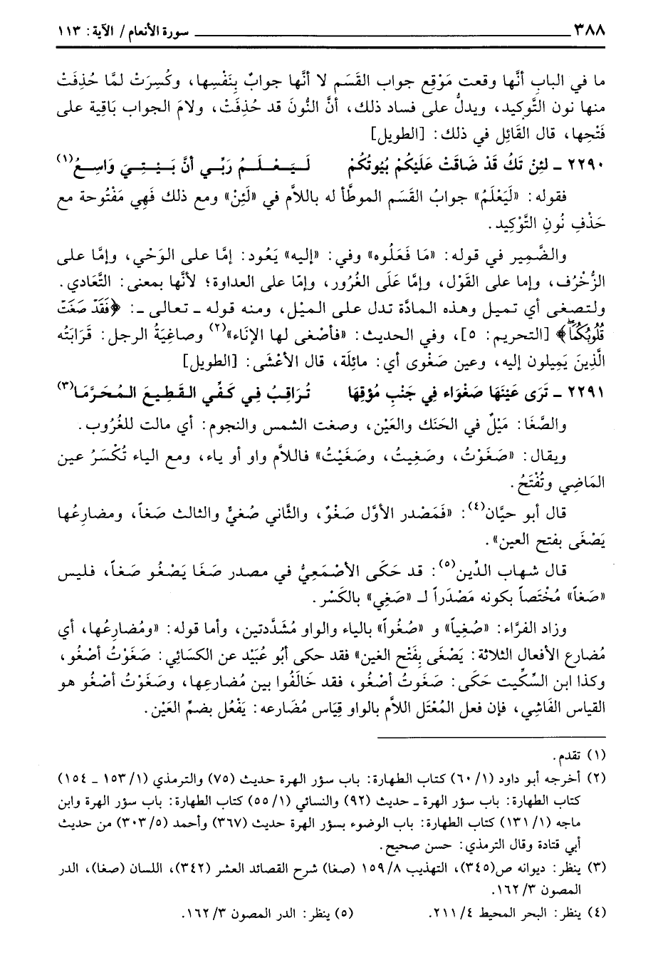 2291 - تَرَى عَينَهَا صَغْوَاء فِي جَنْبِ مُؤقِهَا ... تُرَاقِبُ فِي كَفِّي القَطِيعَ المُحَرَّمَا