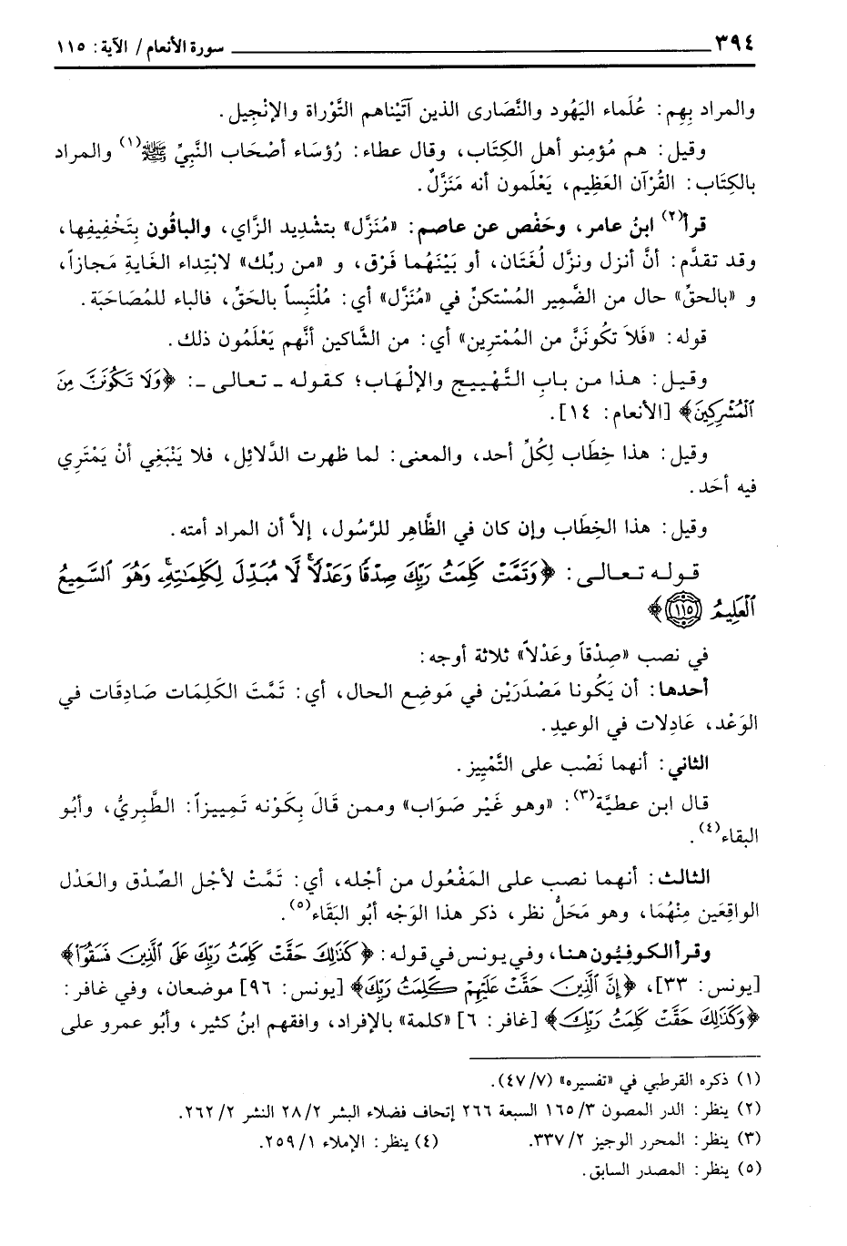 الثالث: انهما نصب على المَفْعُول من أجْله، أي: تَمَّتْ لأجْل الصِّدْق والعَدْل الواقِعَين مِنْهُما، وهو مَحَلُّ نظر، ذكر هذا الوَجْه أبُو البَقَاء.