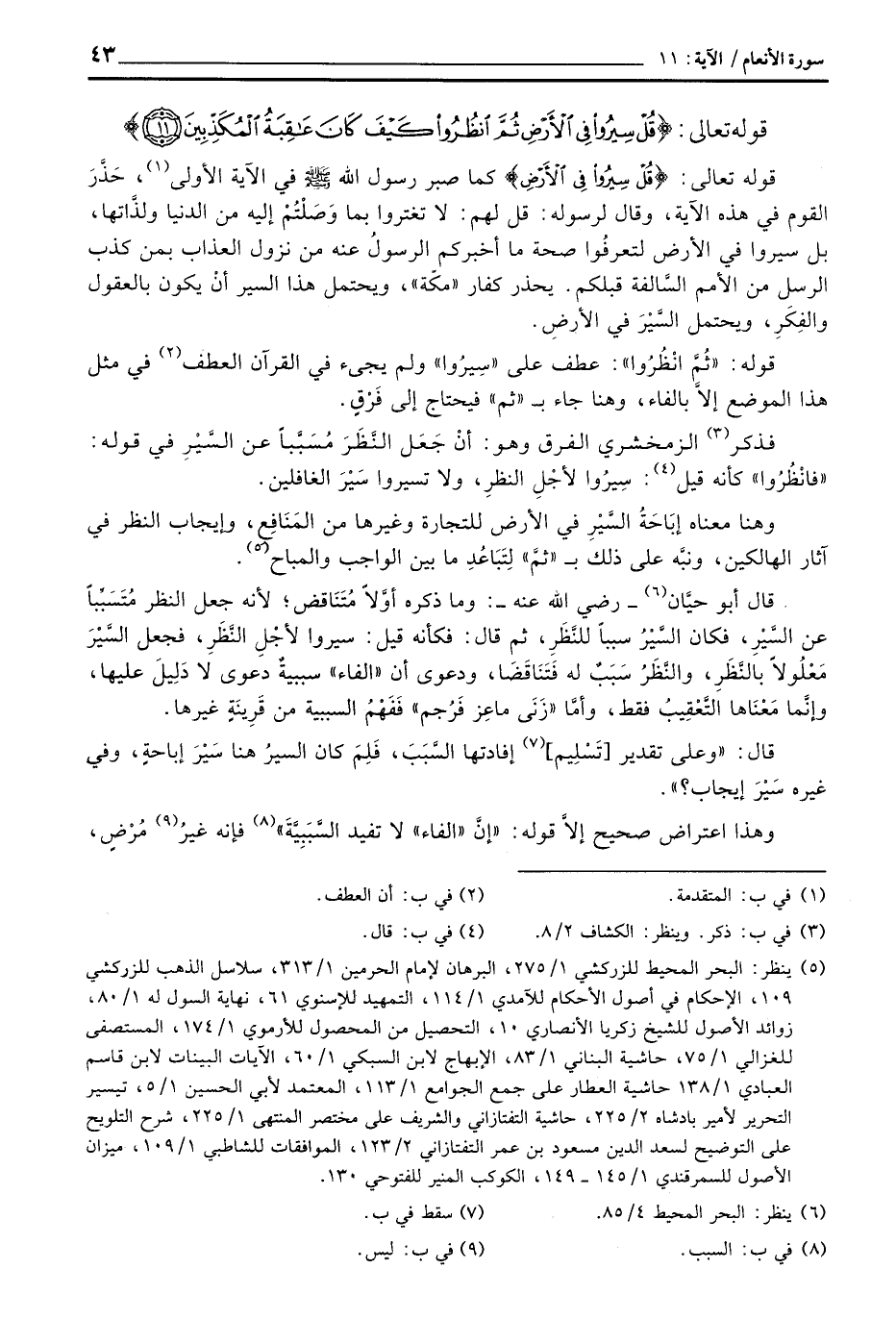 قال:» وعلى تقدير [تَسْلِيم] إفادتها السَّبَبَن فَلِمَ كان السيرُ هنا سَيْرَ إباحةٍ، وفي غيره سَيْرَ إيجاب؟ «.