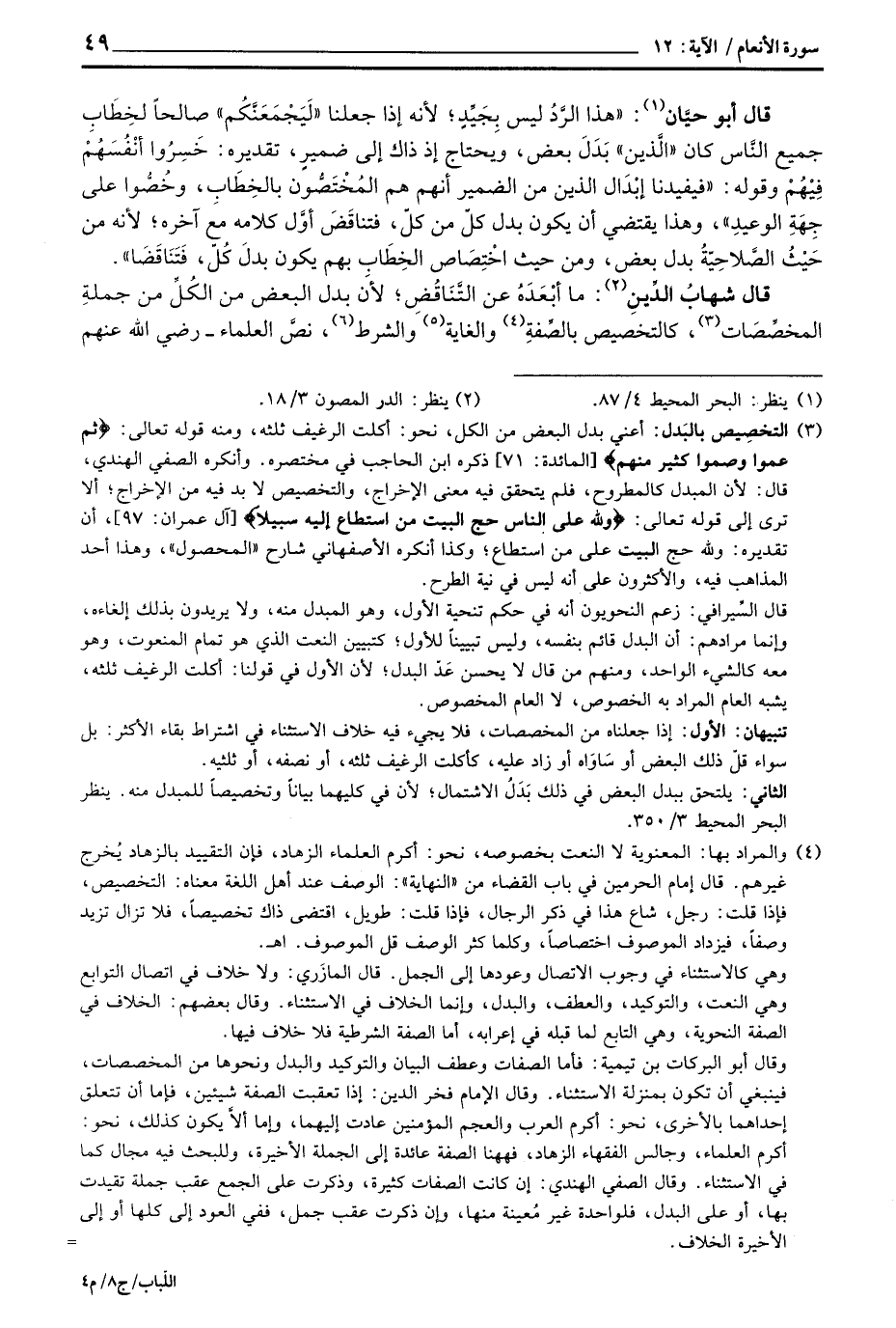 قال شهابُ الدِّينِ: ما أبْعَدَهُ عن التَّنَاقُضِ، لأن بدل البعض من الكُلِّ من حملةِ الخصِّصَات، كالتخصيص بالصِّفةِ والغاية والشرط، نصَّ العلماء - رَضِيَ اللَّهُ عَنْهم -