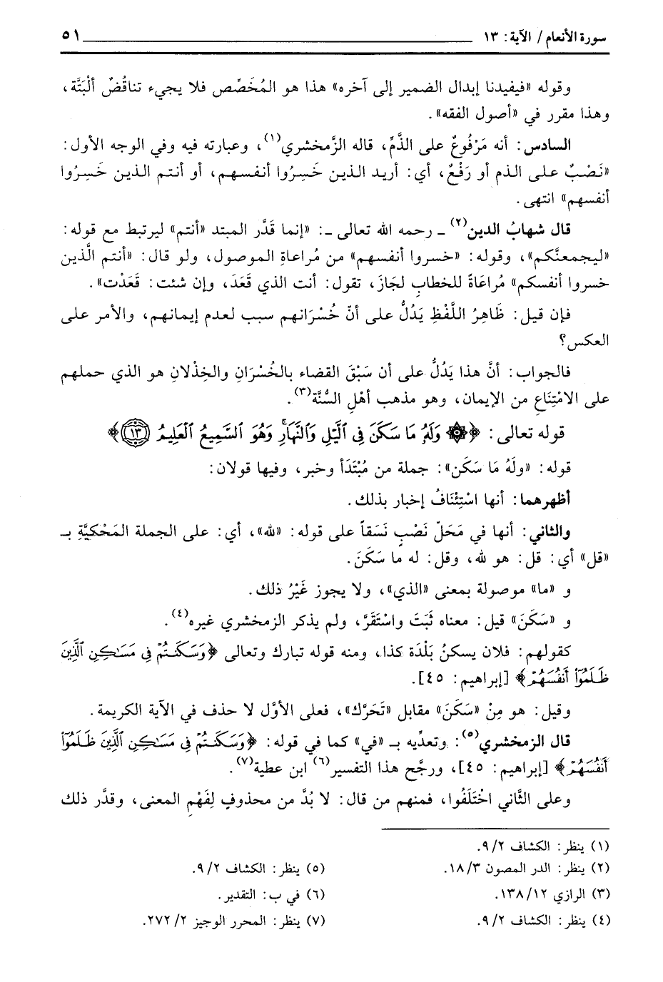 والثاني: أنها في مَحَلّ نَصْبٍ نَسَقاً على قوله: «الله» ، أي: على الجملة المَحْكيَّةِ ب «قل» أي: قل: هو الله، وقل: له ما سَكَنَ.