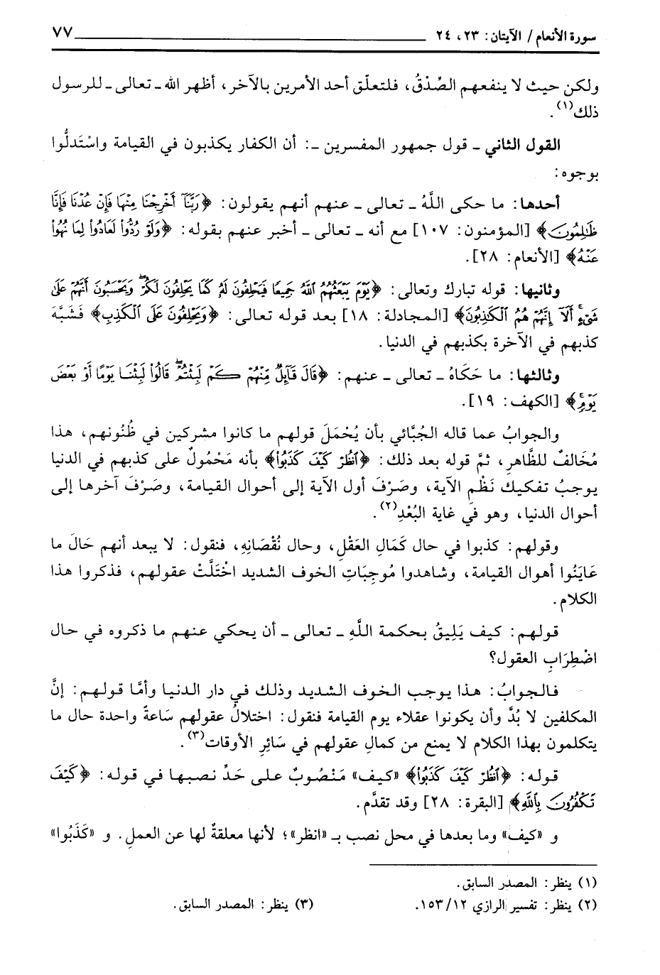 القول الثاني: قول جمهور المفسرين -: أن الكفار يكذبون في القيامة واسْتَدلُّوا بوجوه: