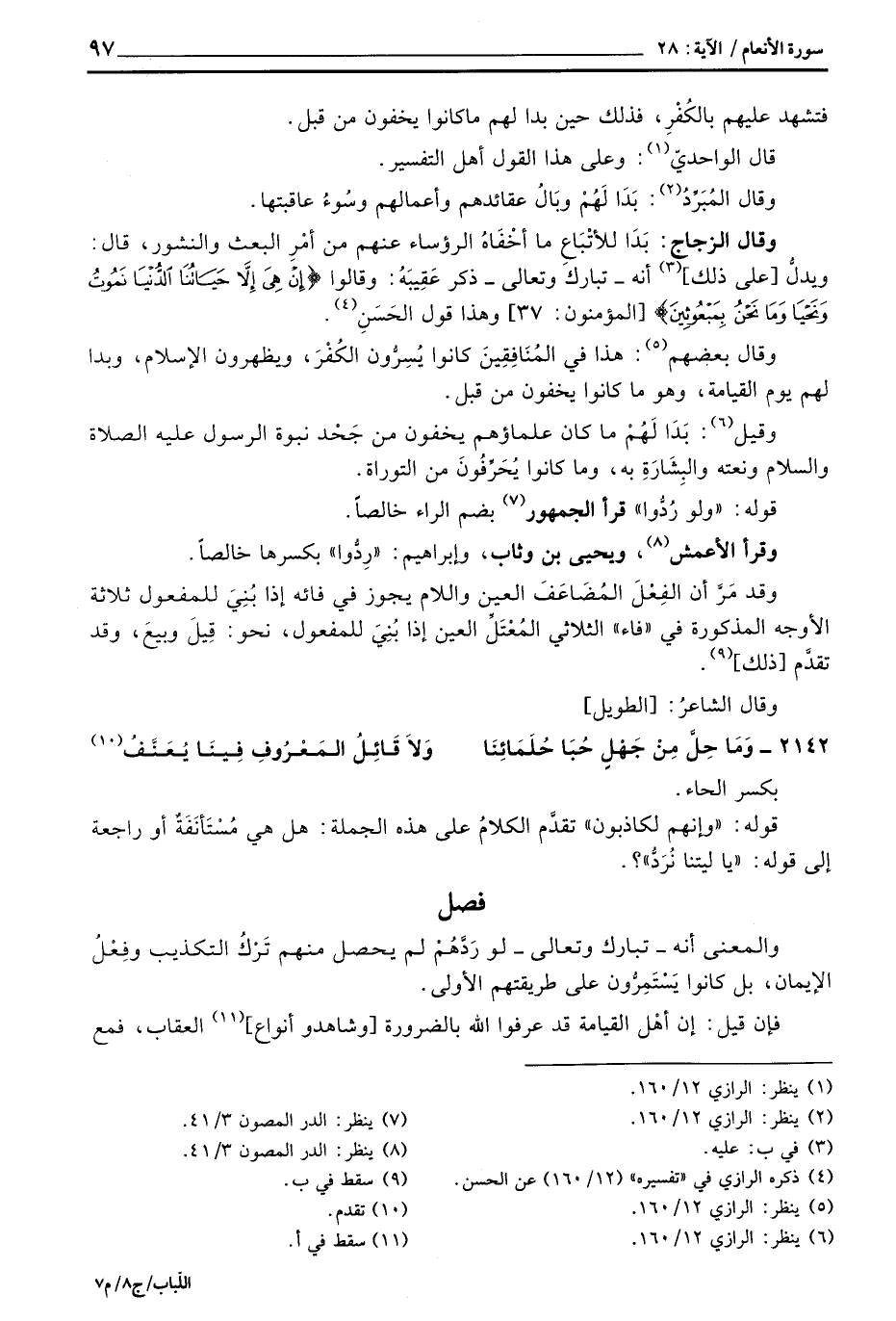 قوله: «وإنهم لكاذبون» تقدمَّ الكلامُ على هذه الجملة: هل هي مُسْتَأنَفَةٌ أو راجعة إلى قوله: «يا ليتنا نُرَدُّ» ؟ .