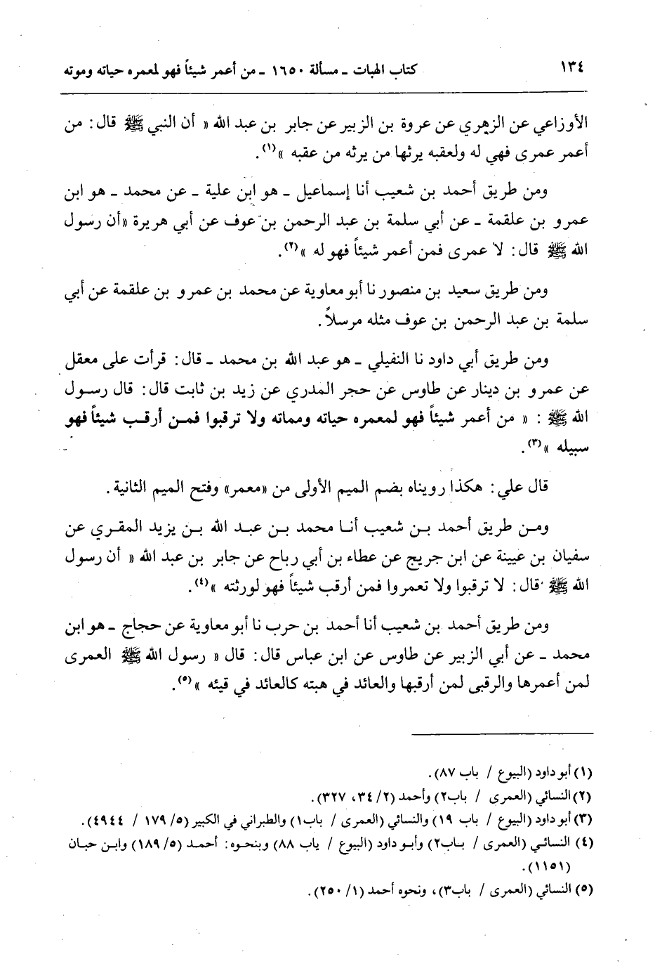 الْأَوْزَاعِيِّ عَنْ الزُّهْرِيِّ عَنْ عُرْوَةَ بْنِ الزُّبَيْرِ عَنْ جَابِرِ بْنِ عَبْدِ اللَّهِ " أَنَّ النَّبِيَّ - صَلَّى اللَّهُ عَلَيْهِ وَسَلَّمَ - قَالَ: «مَنْ أُعْمِرَ عُمْرَى فَهِيَ لَهُ وَلِعَقِبِهِ يَرِثُهَا مَنْ يَرِثُهُ مِنْ عَقِبِهِ» .
