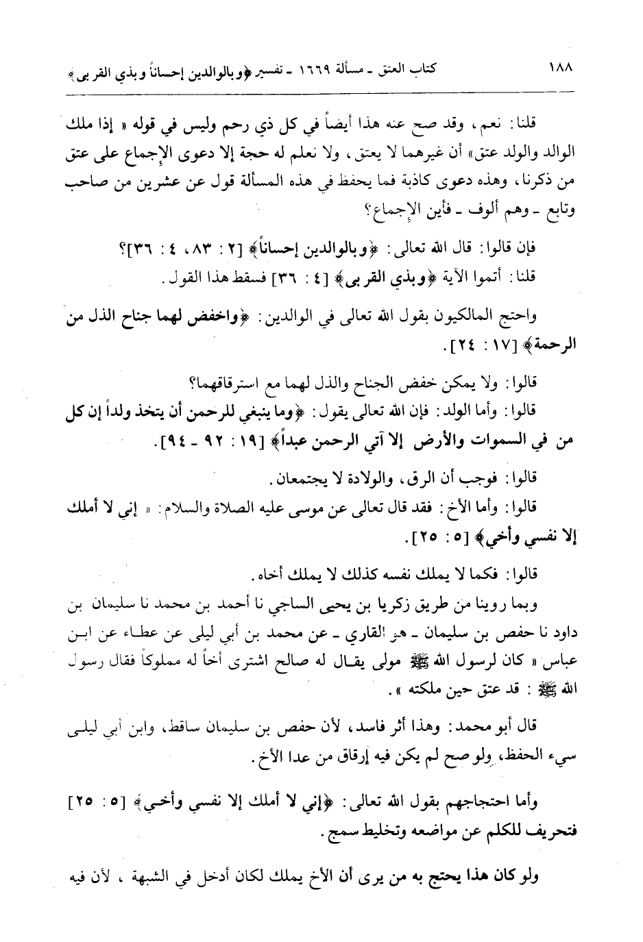 قَالَ أَبُو مُحَمَّدٍ: وَهَذَا أَثَرٌ فَاسِدٌ؛ لِأَنَّ حَفْصَ بْنَ سُلَيْمَانَ سَاقِطٌ، وَابْنَ أَبِي لَيْلَى سِيءُ الْحِفْظِ، وَلَوْ صَحَّ لَمْ يَكُنْ فِيهِ إرْقَاقُ مَنْ عَدَا الْأَخِ.
