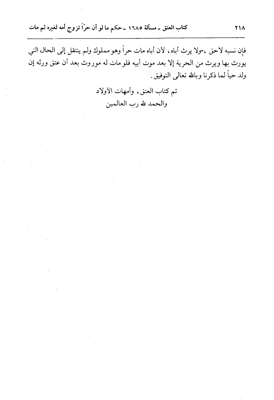 فَإِنَّ نَسَبَهُ لَاحِقٌ، وَلَا يَرِثُ أَبَاهُ؛ لِأَنَّ أَبَاهُ مَاتَ حُرًّا وَهُوَ مَمْلُوكٌ وَلَمْ يَنْتَقِلْ إلَى الْحَالِ الَّتِي يُورَثُ بِهَا وَيَرِثُ مِنْ الْحُرِّيَّةِ إلَّا بَعْدَ مَوْتِ أَبِيهِ فَلَوْ مَاتَ لَهُ مَوْرُوثٌ بَعْدَ أَنْ عَتَقَ وَرِثَهُ إنْ وُلِدَ حَيًّا لِمَا ذَكَرْنَا وَبِاَللَّهِ تَعَالَى التَّوْفِيقُ.