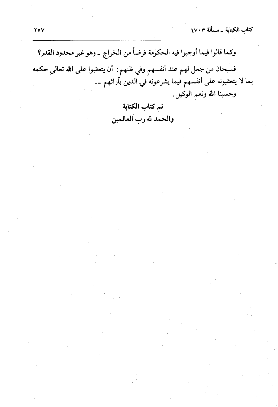 تَمَّ كِتَابُ الْكِتَابَةِ وَالْحَمْدُ لِلَّهِ رَبِّ الْعَالَمِينَ.