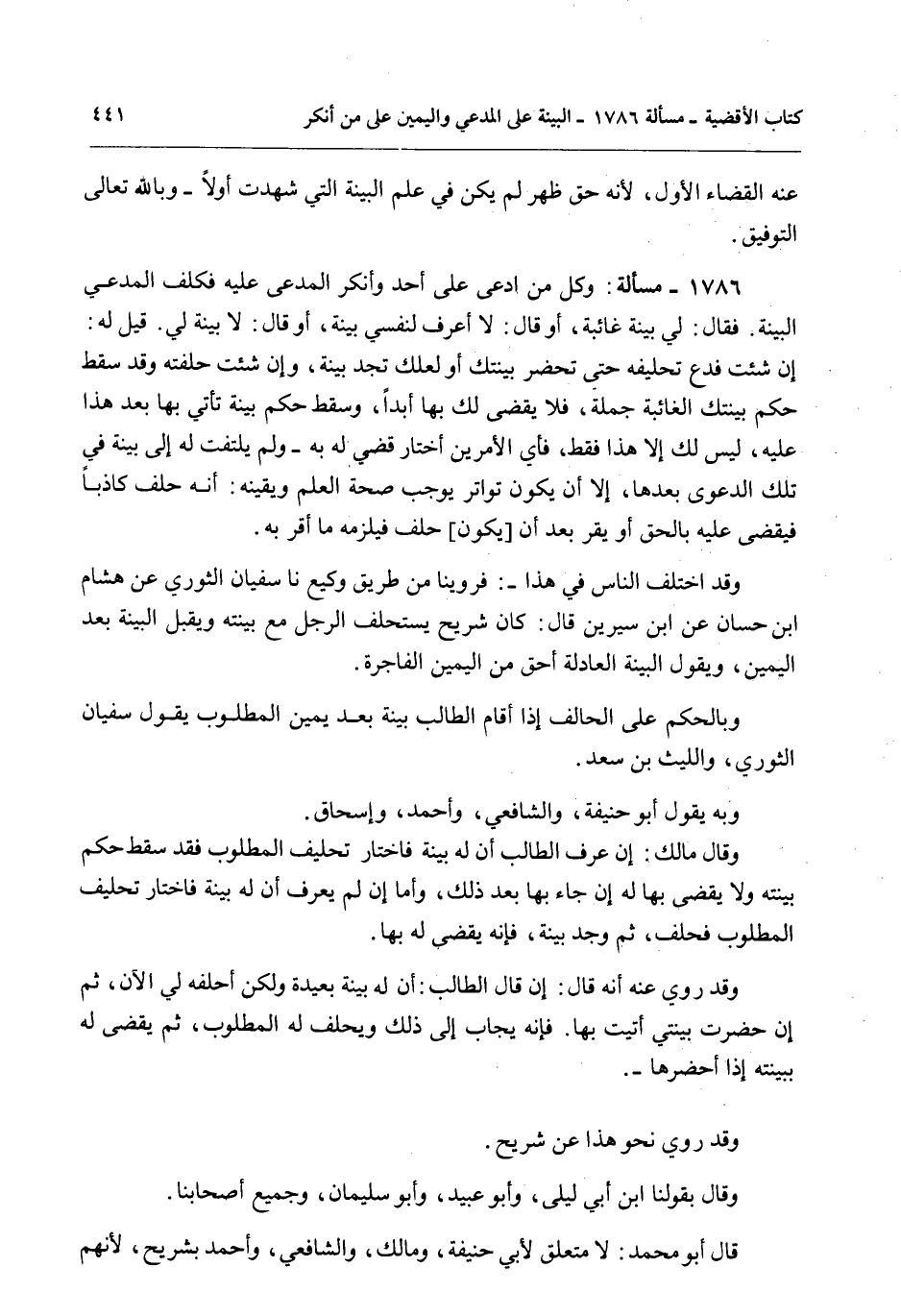 وَقَدْ اخْتَلَفَ النَّاسُ فِي هَذَا -: فَرُوِّينَا مِنْ طَرِيقِ وَكِيعٍ نا سُفْيَانُ الثَّوْرِيُّ عَنْ هِشَامِ بْنِ حَسَّانٍ عَنْ ابْنِ سِيرِينَ قَالَ: كَانَ شُرَيْحٌ يَسْتَحْلِفُ الرَّجُلَ مَعَ بَيِّنَتِهِ وَيَقْبَلُ الْبَيِّنَةَ بَعْدَ الْيَمِينِ، وَيَقُولُ الْبَيِّنَةُ الْعَادِلَةُ أَحَقُّ مِنْ الْيَمِينِ الْفَاجِرَةِ.