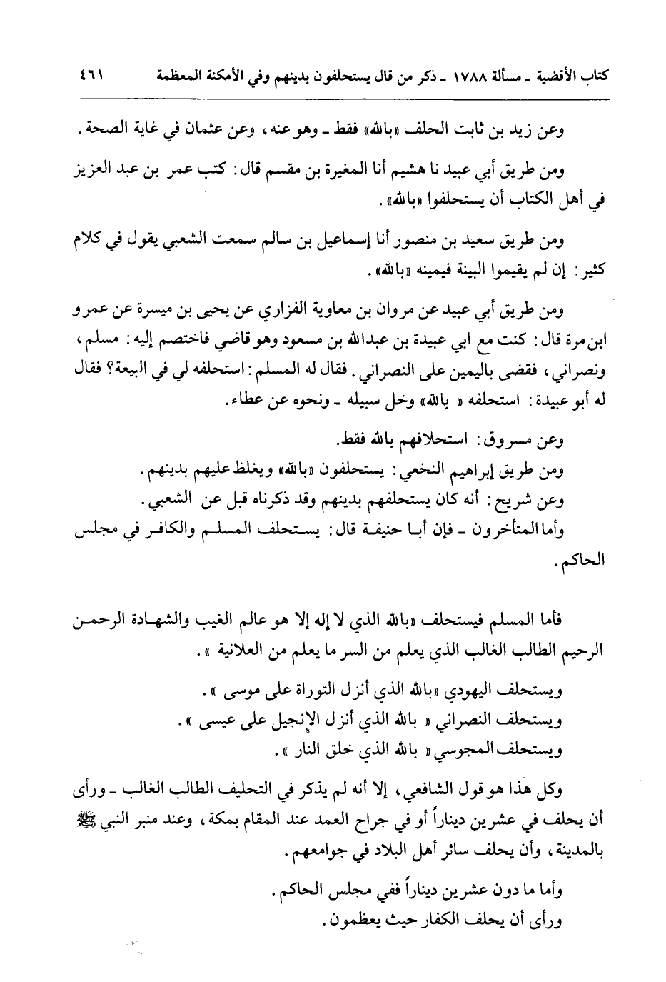 وَمِنْ طَرِيقِ أَبِي عُبَيْدٍ نا هُشَيْمٌ أَنَا الْمُغِيرَةُ بْنُ مِقْسَمٍ قَالَ: كَتَبَ عُمَرُ بْنُ عَبْدِ الْعَزِيزِ فِي أَهْلِ الْكِتَابِ أَنْ يُسْتَحْلَفُوا " بِاَللَّهِ ".