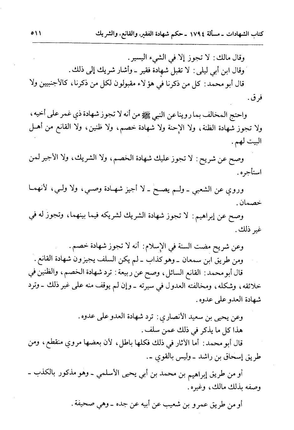 قَالَ أَبُو مُحَمَّدٍ: الْقَانِعُ السَّائِلُ، وَصَحَّ عَنْ رَبِيعَةَ: تُرَدُّ شَهَادَةُ الْخَصْمِ، وَالظَّنِينِ فِي خَلَائِقِهِ، وَشَكْلِهِ، وَمُخَالَفَتِهِ الْعُدُولَ فِي سِيرَتِهِ - وَإِنْ لَمْ يُوقَفْ مِنْهُ عَلَى غَيْرِ ذَلِكَ - وَتُرَدُّ شَهَادَةُ الْعَدُوِّ عَلَى عَدُوِّهِ.