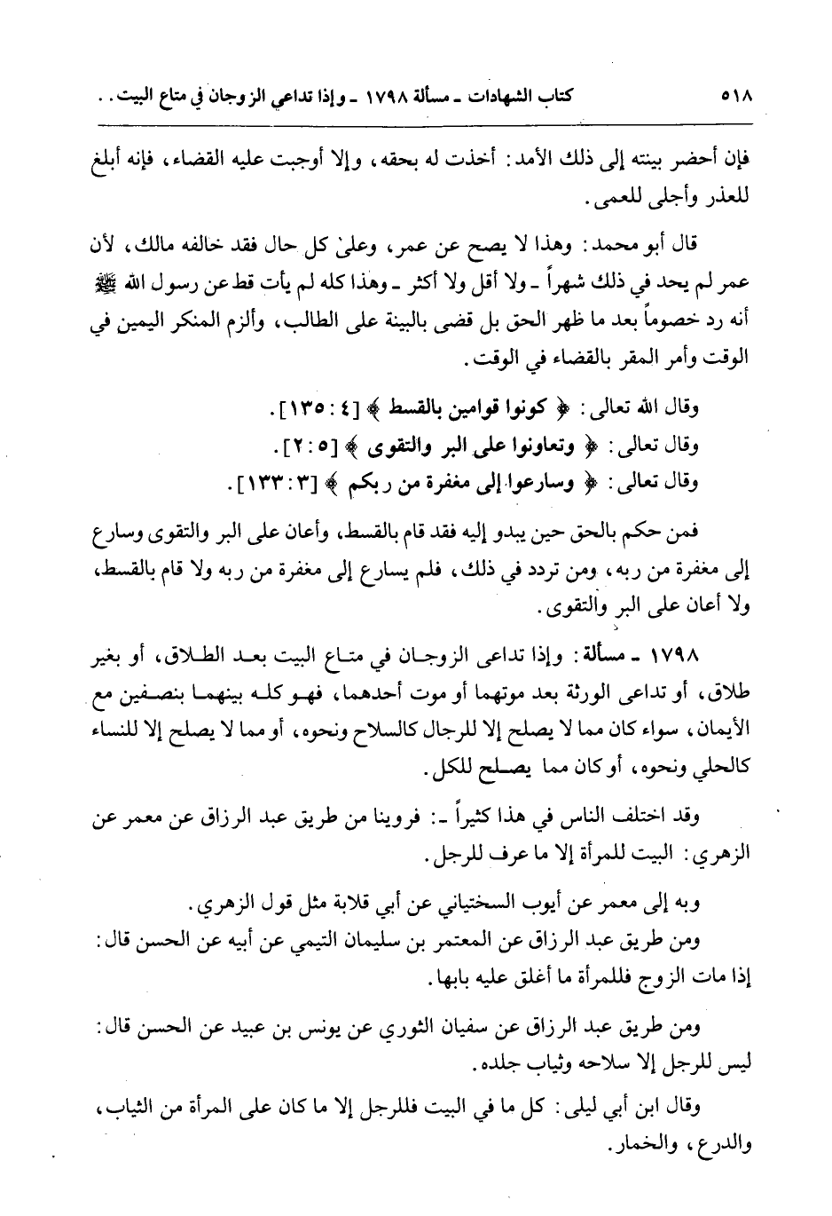 وَقَدْ اخْتَلَفَ النَّاسُ فِي هَذَا كَثِيرًا -: فَرُوِّينَا مِنْ طَرِيقِ عَبْدِ الرَّزَّاقِ عَنْ مَعْمَرٍ عَنْ الزُّهْرِيِّ: الْبَيْتُ لِلْمَرْأَةِ إلَّا مَا عُرِفَ لِلرَّجُلِ.