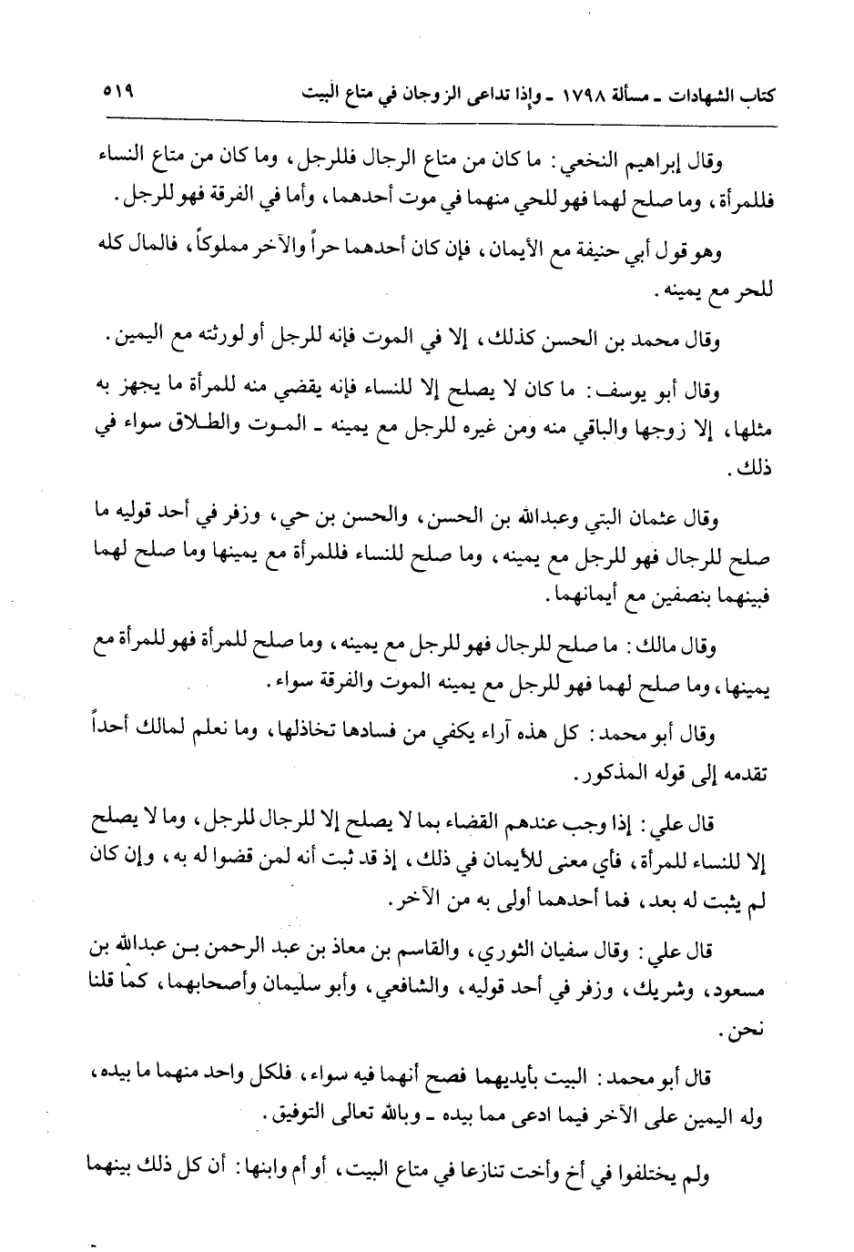وَقَالَ عُثْمَانُ الْبَتِّيُّ وَعَبْدُ اللَّهِ بْنُ الْحَسَنِ، وَالْحَسَنُ بْنُ حَيٍّ، وَزُفَرُ فِي أَحَدِ قَوْلَيْهِ مَا صَلَحَ لِلرِّجَالِ فَهُوَ لِلرَّجُلِ مَعَ يَمِينِهِ، وَمَا صَلَحَ لِلنِّسَاءِ فَلِلْمَرْأَةِ مَعَ يَمِينِهَا وَمَا صَلَحَ لَهُمَا فَبَيْنَهُمَا بِنِصْفَيْنِ مَعَ أَيْمَانِهِمَا.