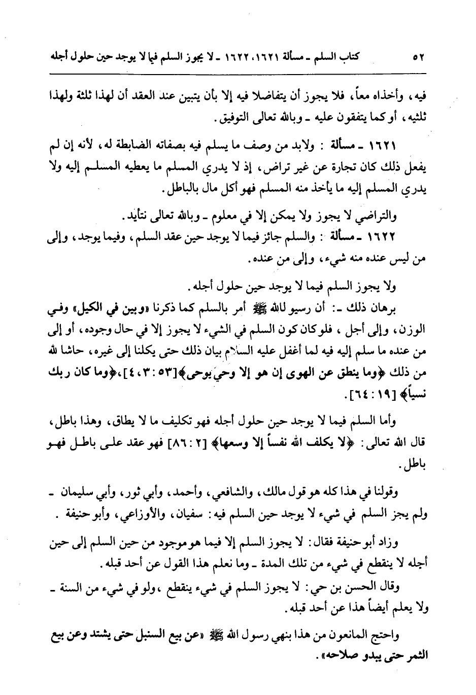 1622 - مَسْأَلَةٌ: وَالسَّلَمُ جَائِزٌ فِيمَا لَا يُوجَدُ حِينَ عَقْدِ السَّلَمِ، وَفِيمَا يُوجَدُ، وَإِلَى مَنْ لَيْسَ عِنْدَهُ مِنْهُ شَيْءٌ، وَإِلَى مَنْ عِنْدَهُ.