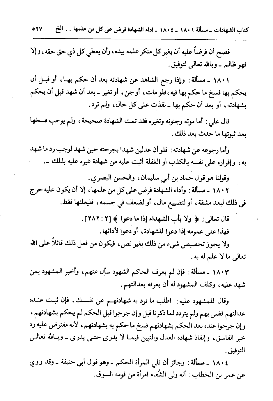 1802 - مَسْأَلَةٌ: وَأَدَاءُ الشَّهَادَةِ فَرْضٌ عَلَى كُلِّ مَنْ عَلِمَهَا، إلَّا أَنْ يَكُونَ عَلَيْهِ حَرَجٌ فِي ذَلِكَ لِبُعْدِ مَشَقَّةٍ، أَوْ لِتَضْيِيعِ مَالٍ، أَوْ لِضَعْفٍ فِي جِسْمِهِ، فَلْيُعْلِنْهَا فَقَطْ.