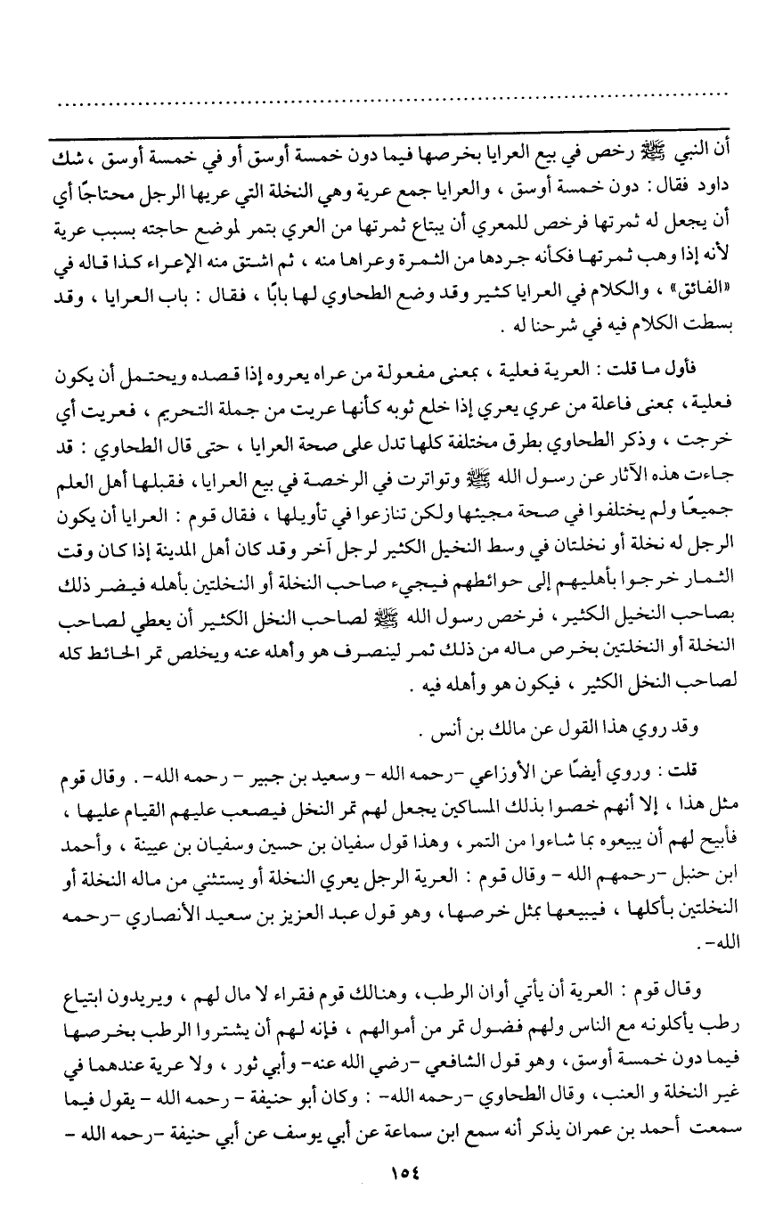 فأول ما قلت: العرية فعلية، بمعنى مفعولة من عراه يعروه إذا قصده ويحتمل أن يكون فعلية، بمعنى فاعلة من عري يعري إذا خلع ثوبه كأنها عريت من جملة التحريم، فعريت أي خرجت، وذكر الطحاوي بطرق مختلفة كلها تدل على صحة العرايا، حتى قال الطحاوي: قد جاءت هذه الآثار عن رسول الله - صَلَّى اللَّهُ عَلَيْهِ وَسَلَّمَ - وتواترت في الرخصة في بيع العرايا، فقبلها أهل العلم جميعا ولم يختلفوا في صحة مجيئها ولكن تنازعوا في تأويلها، فقال قوم: العرايا أن يكون الرجل له نخلة أو نخلتان في وسط النخيل الكثير لرجل آخر وقد كان أهل المدينة إذا كان وقت الثمار خرجوا بأهليهم إلى حوائطهم فيجيء صاحب النخلة أو النخلتين بأهله فيضر ذلك بصاحب النخيل الكثير، فرخص رسول الله - صَلَّى اللَّهُ عَلَيْهِ وَسَلَّمَ - لصاحب النخل الكثير أن يعطي لصاحب النخلة أو النخلتين بخرص ماله من ذلك تمر لينصرف هو وأهله عنه ويخلص تمر الحائط كله لصاحب النخل الكثير، فيكون هو وأهله فيه.