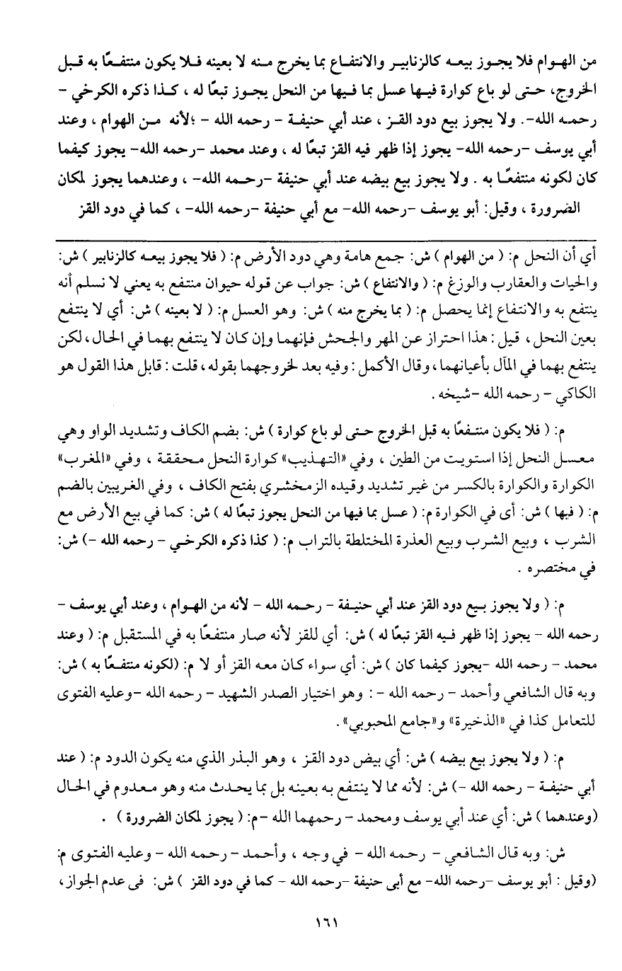 ش: وبه قال الشافعي - رَحِمَهُ اللَّهُ - في وجه، وأحمد - رَحِمَهُ اللَّهُ - وعليه الفتوى م: (وقيل: أبو يوسف - رَحِمَهُ اللَّهُ - مع أبي حنيفة - رَحِمَهُ اللَّهُ - كما في دود القز) ش: في عدم الجواز،
