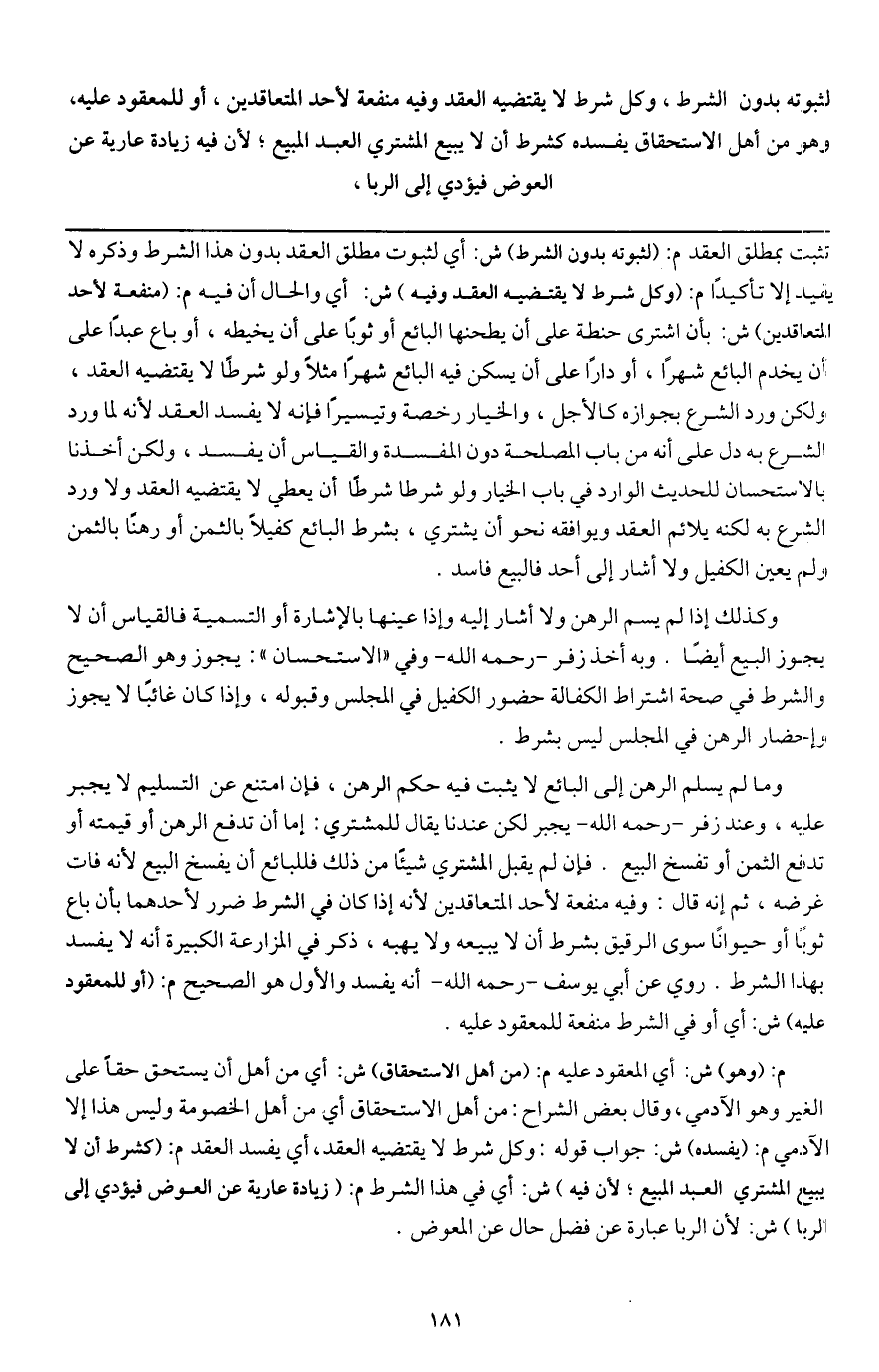 لثبوته بدون الشرط، وكل شرط لا يقتضيه العقد وفيه منفعة لأحد المتعاقدين، أو للمعقود عليه،
