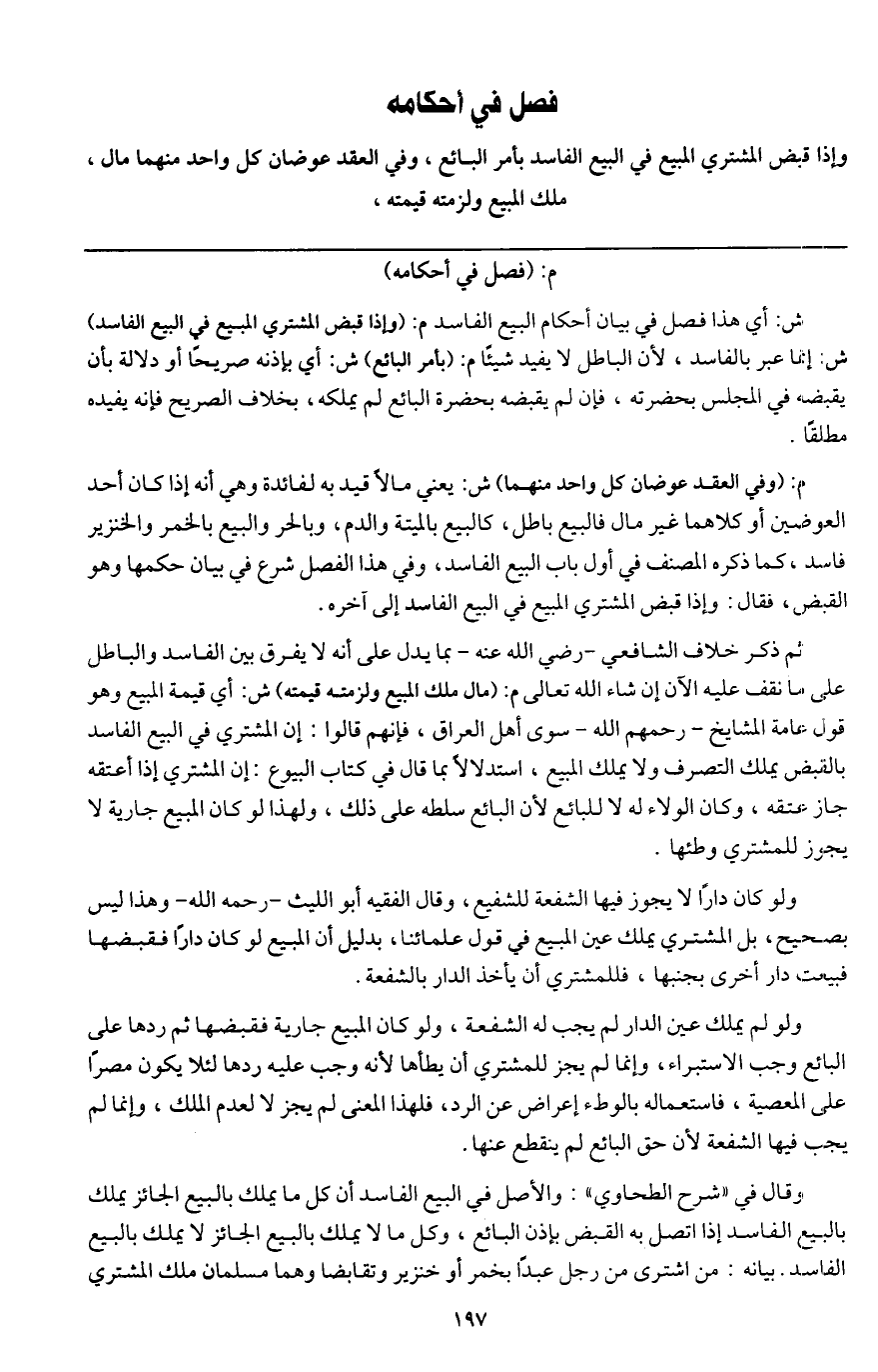 [فصل في بيان أحكام البيع الفاسد]