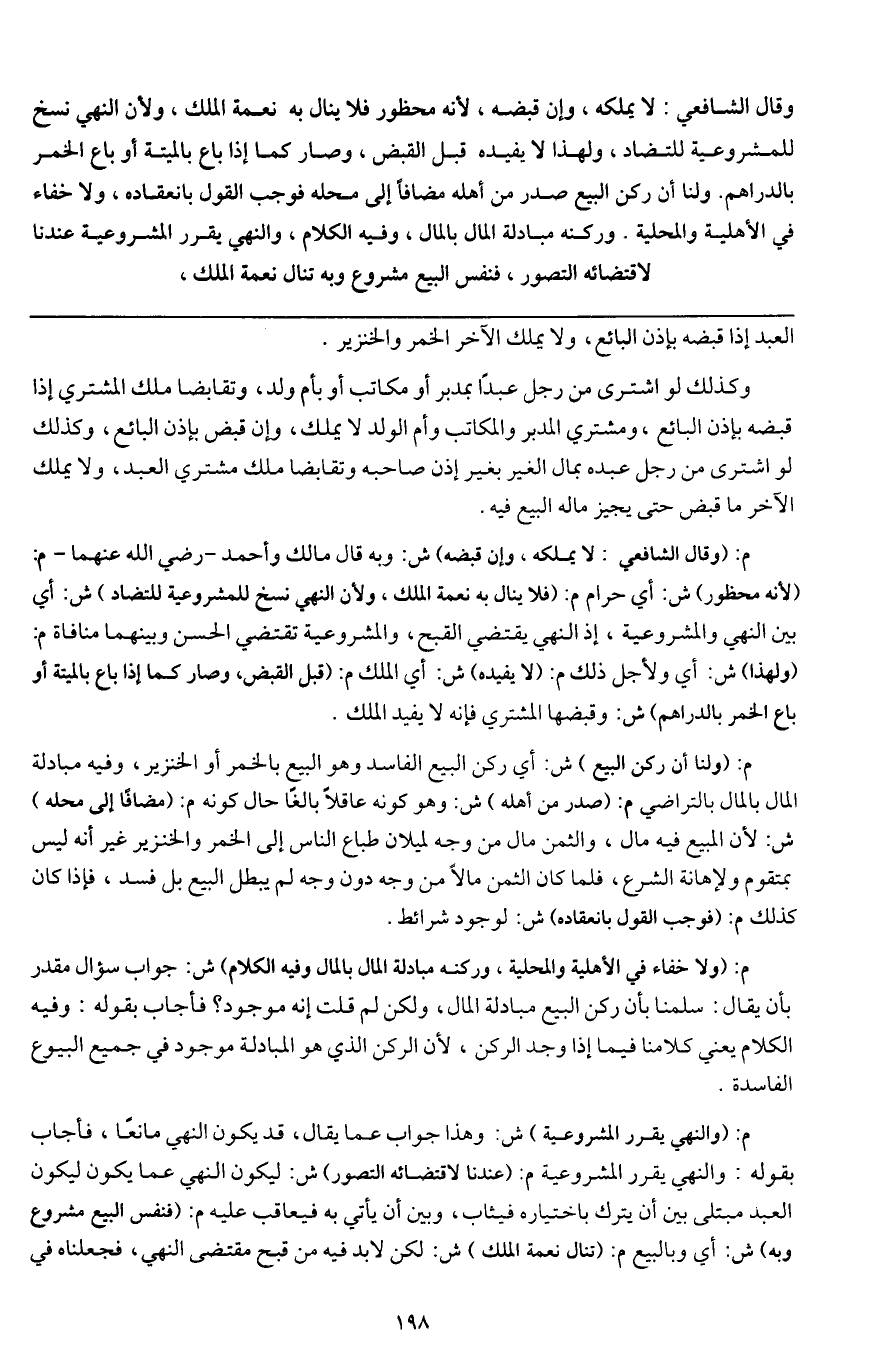 ـــــــــــــــــــــــــــــQالعبد إذا قبضه بإذن البائع، ولا يملك الآخر الخمر والخنزير.
