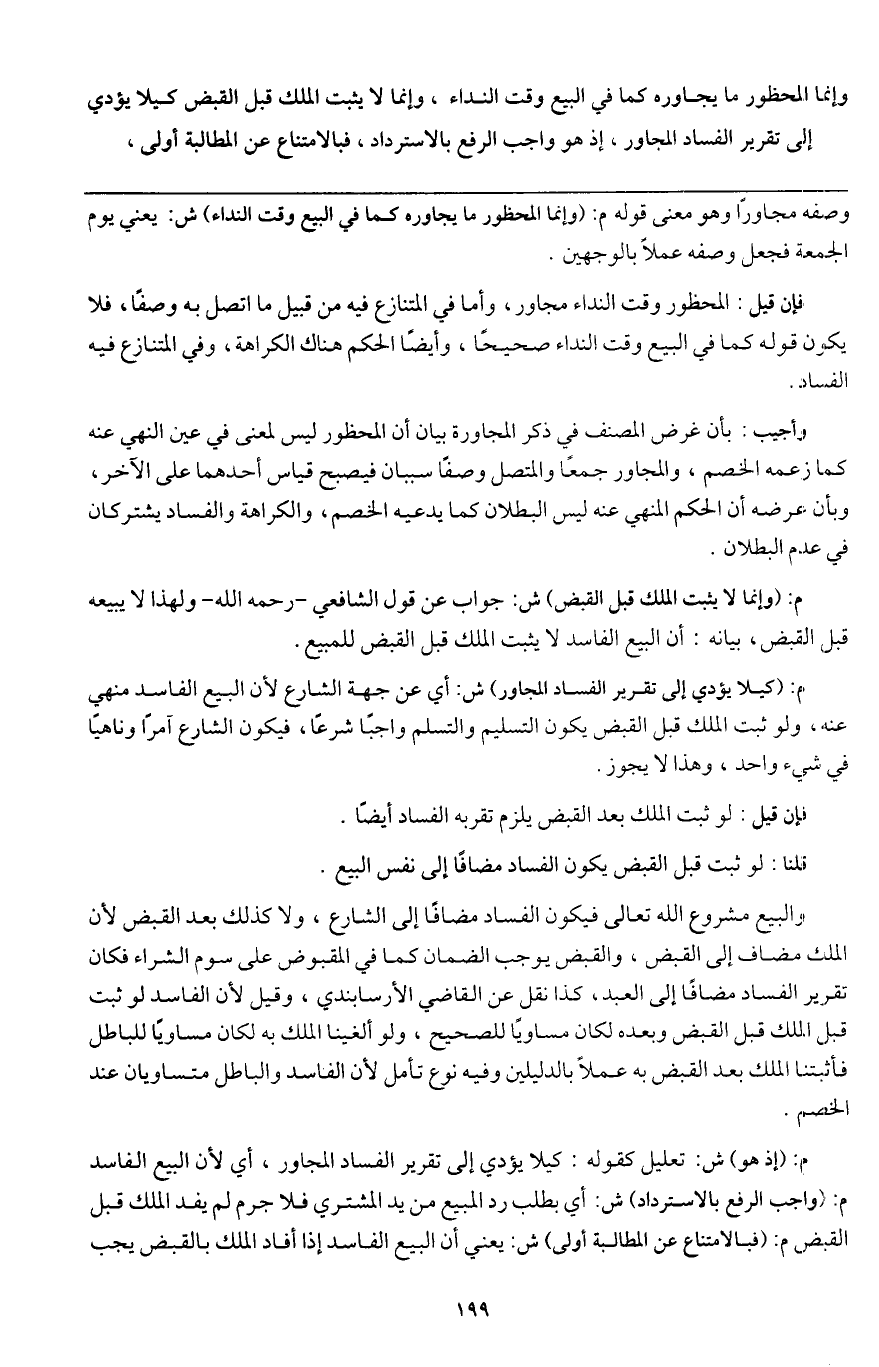 وإنما المحظور ما يجاوره كما في البيع وقت النداء، وإنما لا يثبت الملك قبل القبض كيلا يؤدي إلى تقرير الفساد المجاور، إذ هو واجب الرفع بالاسترداد، فبالامتناع عن المطالبة أولى.