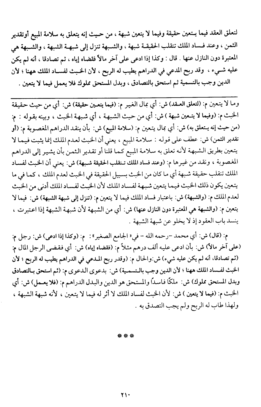 لتعلق العقد فيما يتعين حقيقة وفيما لا يتعين شبهة، من حيث إنه يتعلق به سلامة المبيع أو تقدير الثمن، وعند فساد الملك تنقلب الحقيقة شبهة، والشبهة تنزل إلى شبهة الشبهة، والشبهة هي المعتبرة دون النازل عنها. قال: وكذا إذا ادعى على آخر مالا فقضاه إياه، ثم تصادقا، أنه لم يكن عليه شيء، وقد ربح المدعي في الدراهم يطيب له الربح، لأن الخبث لفساد الملك هاهنا؛ لأن الدين وجب بالتسمية ثم استحق بالتصادق، وبدل المستحق مملوك فلا يعمل فيما لا يتعين.