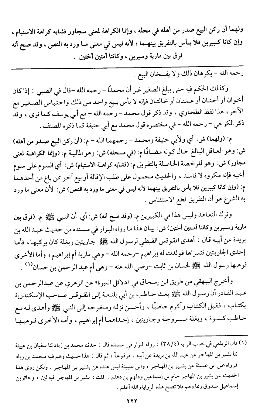وترك التعاهد وليس هذا في الكبيرين م: (وقد صح أنه) ش: أي أن النبي - صَلَّى اللَّهُ عَلَيْهِ وَسَلَّمَ - م: (فرق بين مارية وسيرين وكانتا أمتين أختين) ش: بيان هذا ما رواه البزار في مسنده من «حديث عبد الله بن بريدة عن أبيه قال: أهدى المقوقس القبطي لرسول الله - صَلَّى اللَّهُ عَلَيْهِ وَسَلَّمَ - جاريتين وبغلة كان يركبها، فأما إحدى الجاريتين فتسراها فولدت له إبراهيم - رَحِمَهُ اللَّهُ - وهي مارية أم إبراهيم، وأما الأخرى فوهبها رسول الله - صَلَّى اللَّهُ عَلَيْهِ وَسَلَّمَ - لحسان بن ثابت - رَضِيَ اللَّهُ عَنْهُ - وهي أم عبد الرحمن بن حسان» .