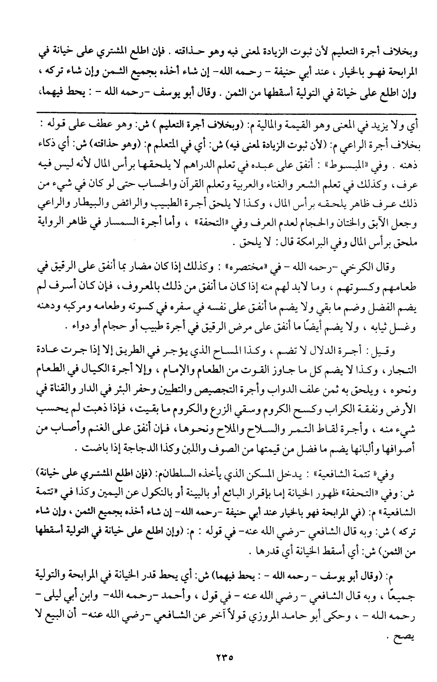 وبخلاف أجرة التعليم لأن ثبوت الزيادة لمعنى فيه وهو حذاقته، فإن اطلع المشتري على خيانة في المرابحة فهو بالخيار، عند أبي حنيفة - رَحِمَهُ اللَّهُ - إن شاء أخذه بجميع الثمن وإن شاء تركه،