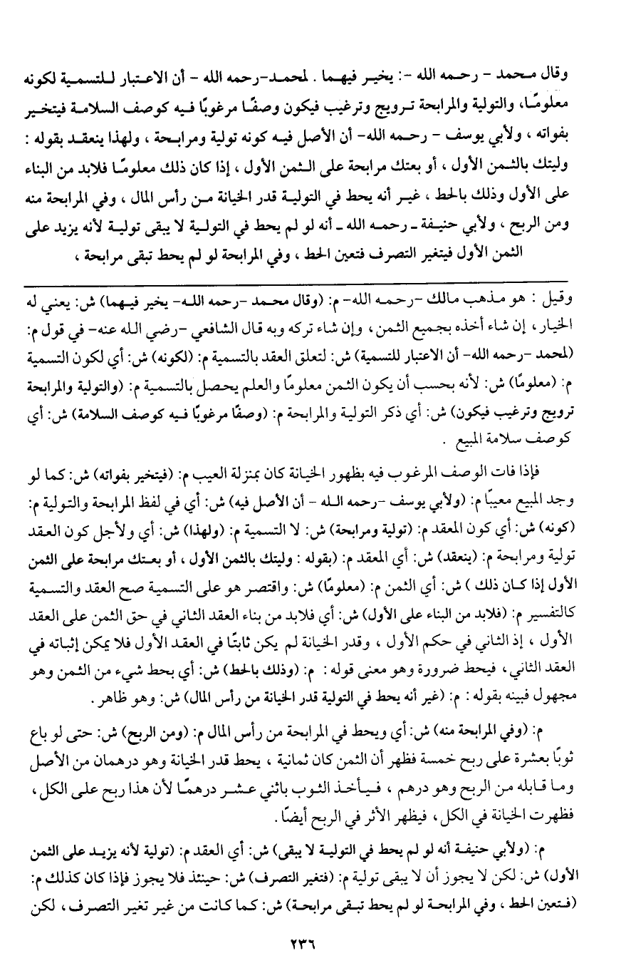 فإذا فات الوصف المرغوب فيه بظهور الخيانة كان بمنزلة العيب م: (فيتخير بفواته) ش: كما لو وجد المبيع معيبا م: (ولأبي يوسف - رَحِمَهُ اللَّهُ - أن الأصل فيه) ش: أي في لفظ المرابحة والتولية م: (كونه) ش: أي كون المعقد م: (تولية ومرابحة) ش: لا التسمية م: (ولهذا) ش: أي ولأجل كون العقد تولية ومرابحة م: (ينعقد) ش: أي المعقد م: (بقوله: وليتك بالثمن الأول، أو بعتك مرابحة على الثمن الأول إذا كان ذلك) ش: أي الثمن م: (معلوما) ش: واقتصر هو على التسمية صح العقد والتسمية كالتفسير م: (فلا بد من البناء على الأول) ش: أي فلا بد من بناء العقد الثاني في حق الثمن على العقد الأول، إذ الثاني في حكم الأول، وقدر الخيانة لم يكن ثابتا في العقد الأول فلا يمكن إثباته في العقد الثاني، فيحط ضرورة وهو معنى قوله: م: (وذلك بالحط) ش: أي بحط شيء من الثمن وهو مجهول فبينه بقوله: م: (غير أنه يحط في التولية قدر الخيانة من رأس المال) ش: وهو ظاهر.