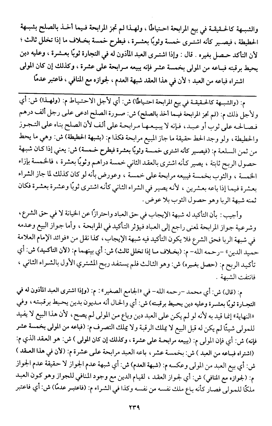 ـــــــــــــــــــــــــــــQم: (والشبهة كالحقيقة في بيع المرابحة احتياطا) ش: أي لأجل الاحتياط م: (ولهذا) ش: أي ولأجل ذلك م: (لم تجز المرابحة فيما أخذ بالصلح) ش: صورة الصلح ادعى على رجل ألف درهم فصالحه على ثوب أو عبد، فإنه لا يبيعها مرابحة على ألف لأن الصلح بناه على التجوز والحطيطة، ولو وجد حقيقة ما جاز المبيع مرابحة فكذا م: (بشبهة الحطيطة) ش: وهي ما يحط من ثمن السلعة م: (فيصير كأنه اشترى خمسة وثوبا بعشرة فطرح خمسة) ش: يعني إذا كان شبه حصول الربح ثابتة، يصير كأنه اشترى بالعقد الثاني خمسة دراهم وثوبا بعشرة، فالخمسة بإزاء الخمسة، والثوب بخمسة فيبيعه مرابحة على خمسة، وعورض بأنه لو كان كذلك لما جاز الشراء بعشرة فيما إذا باعه بعشرين، لأنه يصير في الشراء الثاني كأنه اشترى ثوبا وعشرة بعشرة فكان ثمنه شبهة الربا وهو حصول الثوب بلا عوض.