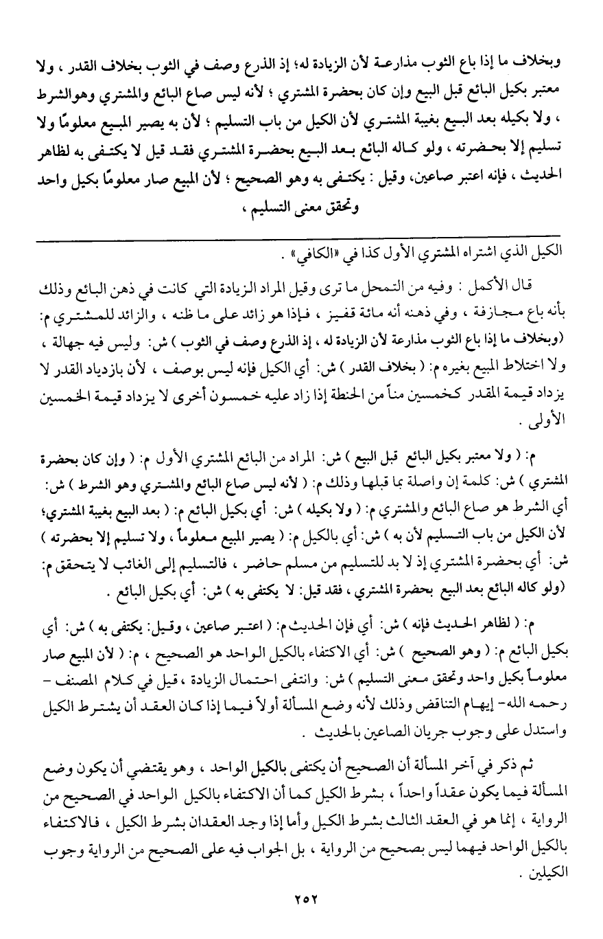 ـــــــــــــــــــــــــــــQالكيل الذي اشتراه المشتري الأول كذا في " الكافي ".