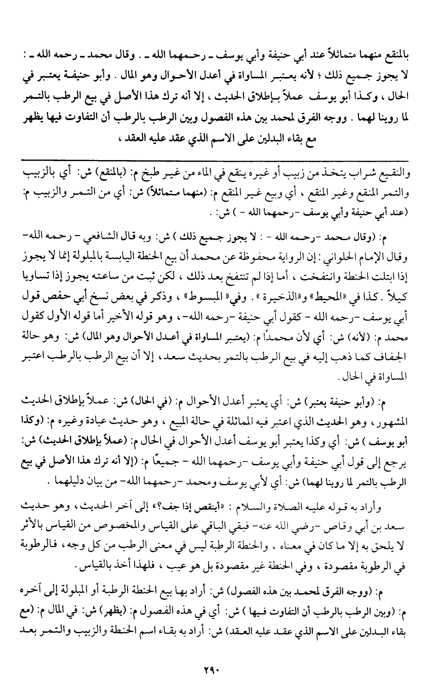 بالمنقع منهما متماثلا عند أبي حنيفة وأبي يوسف -رحمهما الله- وقال محمد - رَحِمَهُ اللَّهُ - لا يجوز جميع ذلك؛ لأنه يعتبر المساواة في أعدل الأحوال وهو المال. وأبو حنيفة يعتبر في الحال، وكذا أبو يوسف عملا بإطلاق الحديث، إلا أنه ترك هذا الأصل في بيع الرطب بالتمر لما روينا لهما. ووجه الفرق لمحمد بين هذه الفصول وبين الرطب بالرطب أن التفاوت فيها يظهر مع بقاء البدلين على الاسم الذي عقد عليه العقد،