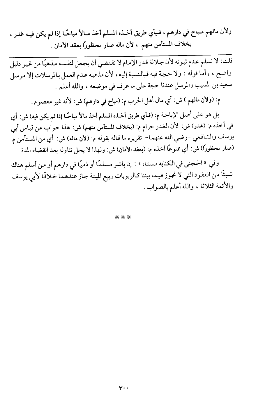 بل هو على أصل الإباحة م: (فبأي طريق أخذه المسلم أخذ مالا مباحا إذا لم يكن فيه) ش: أي في أخذه م: (غدر) ش: لأن الغدر حرام م: (بخلاف المستأمن منهم) ش: هذا جواب عن قياس أبي يوسف والشافعي - رَضِيَ اللَّهُ عَنْهُ - تقريره ما قاله بقوله م: (لأن ماله) ش: أي من المستأمن م: (صار محظورا) ش: أي ممنوعا أخذه م: (بعقد الأمان) ش: ولهذا لا يحل تناوله بعد انقضاء المدة.