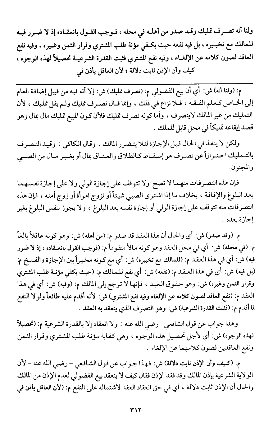 ولكن لا ينفذ في الحال قبل الإجازة لئلا يتضرر المالك. وقال الكاكي: وقيد التصرف بالتمليك احترازا عن تصرف هو إسقاط كالطلاق والعتاق بمال أو بغير مال من الصبي والمجنون.