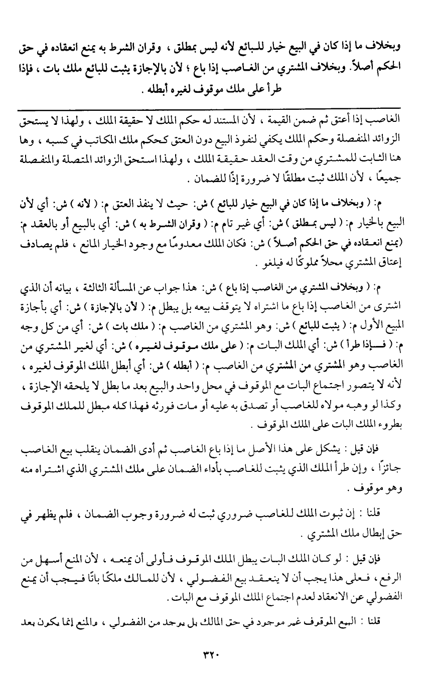 فإن قيل: لو كان الملك البات يبطل الملك الموقوف فأولى أن يمنعه، لأن المنع أسهل من الرفع، فعلى هذا يجب أن لا ينعقد بيع الفضولي، لأن للمالك ملكا باتا فيجب أن يمنع الفضولي عن الانعقاد لعدم اجتماع الملك الموقوف مع البات.