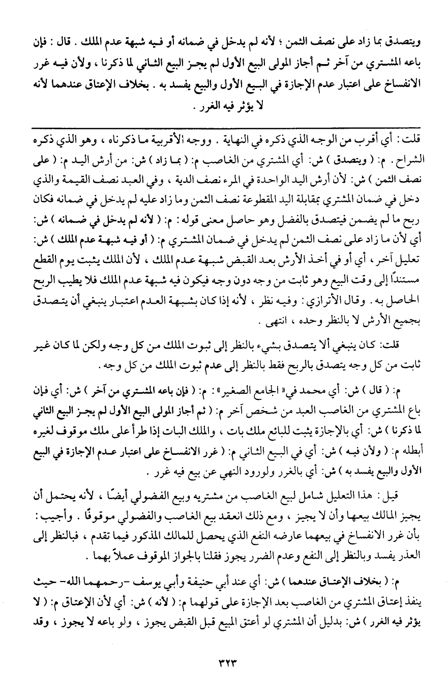 قلت: كان ينبغي ألا يتصدق بشيء بالنظر إلى ثبوت الملك من كل وجه ولكن لما كان غير ثابت من كل وجه يتصدق بالربح فقط بالنظر إلى عدم ثبوت الملك من كل وجه.