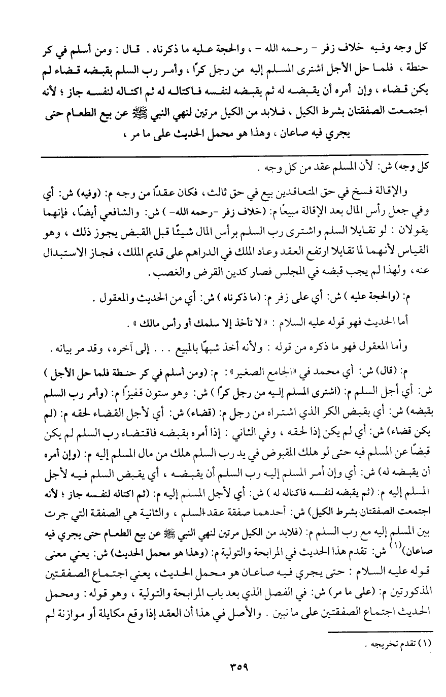 أما الحديث فهو قوله - عَلَيْهِ السَّلَامُ -: «لا تأخذ إلا سلمك أو رأس مالك» .