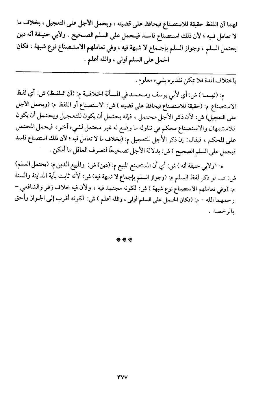 لهما أن اللفظ حقيقة للاستصناع فيحافظ على قضيته، ويحمل الأجل على التعجيل، بخلاف ما لا تعامل فيه؛ لأن ذلك استصناع فاسد فيحمل على السلم الصحيح. ولأبي حنيفة أنه دين يحتمل السلم، وجواز السلم بإجماع لا شبهة فيه، وفي تعاملهم الاستصناع نوع شهبة، فكان الحمل على السلم أولى، والله أعلم.