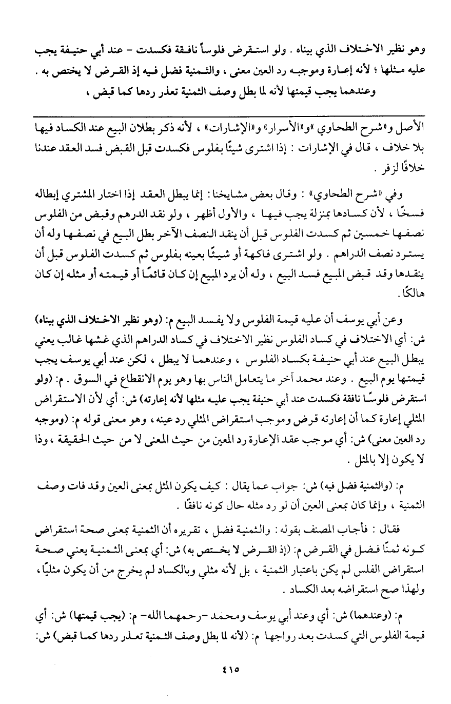 ـــــــــــــــــــــــــــــQالأصل و" شرح الطحاوي " و" الأسرار " و" الإشارات "، لأنه ذكر بطلان البيع عند الكساد فيها بلا خلاف، قال في الإشارات: إذا اشترى شيئا بفلوس فكسدت قبل القبض فسد العقد عندنا خلافا لزفر.