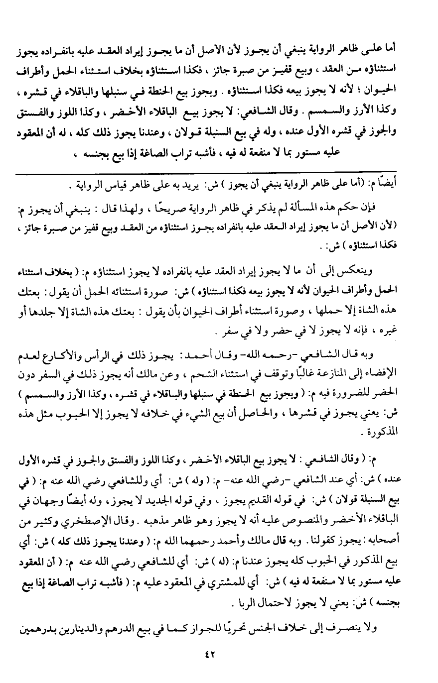 م: (ويحوز بيع الحنطة في سنبلها والباقلاء في قشره، وكذا الأرز والسمسم) ش: يعني يجوز في قشرها، والحاصل أن بيع الشيء في خلافه لا يجوز إلا الحبوب مثل هذه المذكورة.