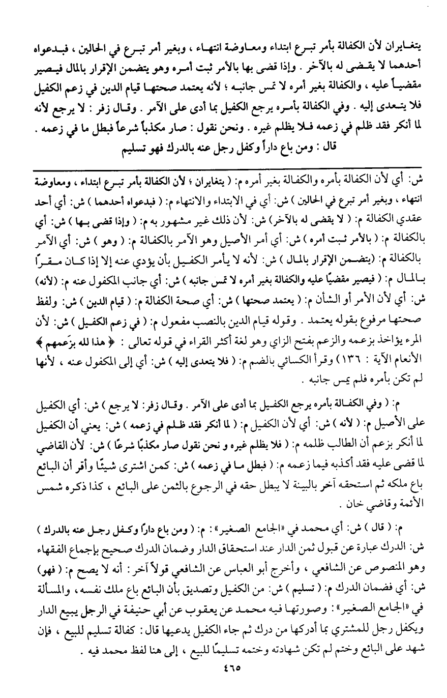 يتغايران لأن الكفالة بأمر تبرع ابتداء ومعاوضة انتهاء، وبغير أمر تبرع في الحالين، فبدعواه أحدهما لا يقضى له بالآخر. وإذا قضى بها بالأمر ثبت أمره وهو يتضمن الإقرار بالمال فيصير مقضيا عليه، والكفالة بغير أمره لا تمس جانبه؛ لأنه يعتمد صحتها قيام الدين في زعم الكفيل فلا يتعدى إليه. وفي الكفالة بأمره يرجع الكفيل بما أدى على الآمر. وقال زفر: لا يرجع لأنه لما أنكر فقد ظلم في زعمه فلا يظلم غيره. ونحن نقول: صار مكذبا شرعا فبطل ما في زعمه. قال: ومن باع دارا وكفل رجل عنه بالدرك فهو تسليم.