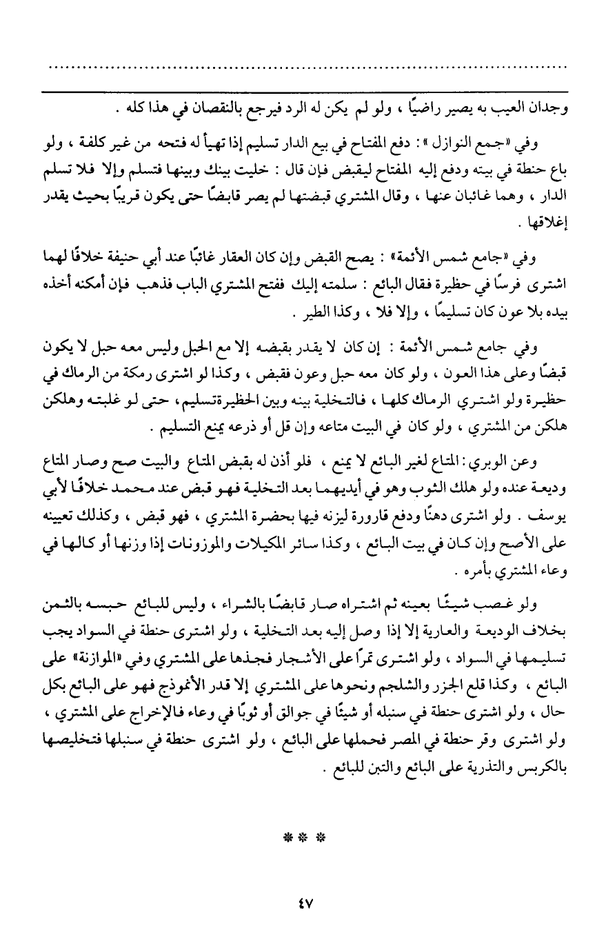 ـــــــــــــــــــــــــــــQوجدان العيب به يصير راضيا، ولو لم يكن له الرد فيرجع بالنقصان في هذا كله.