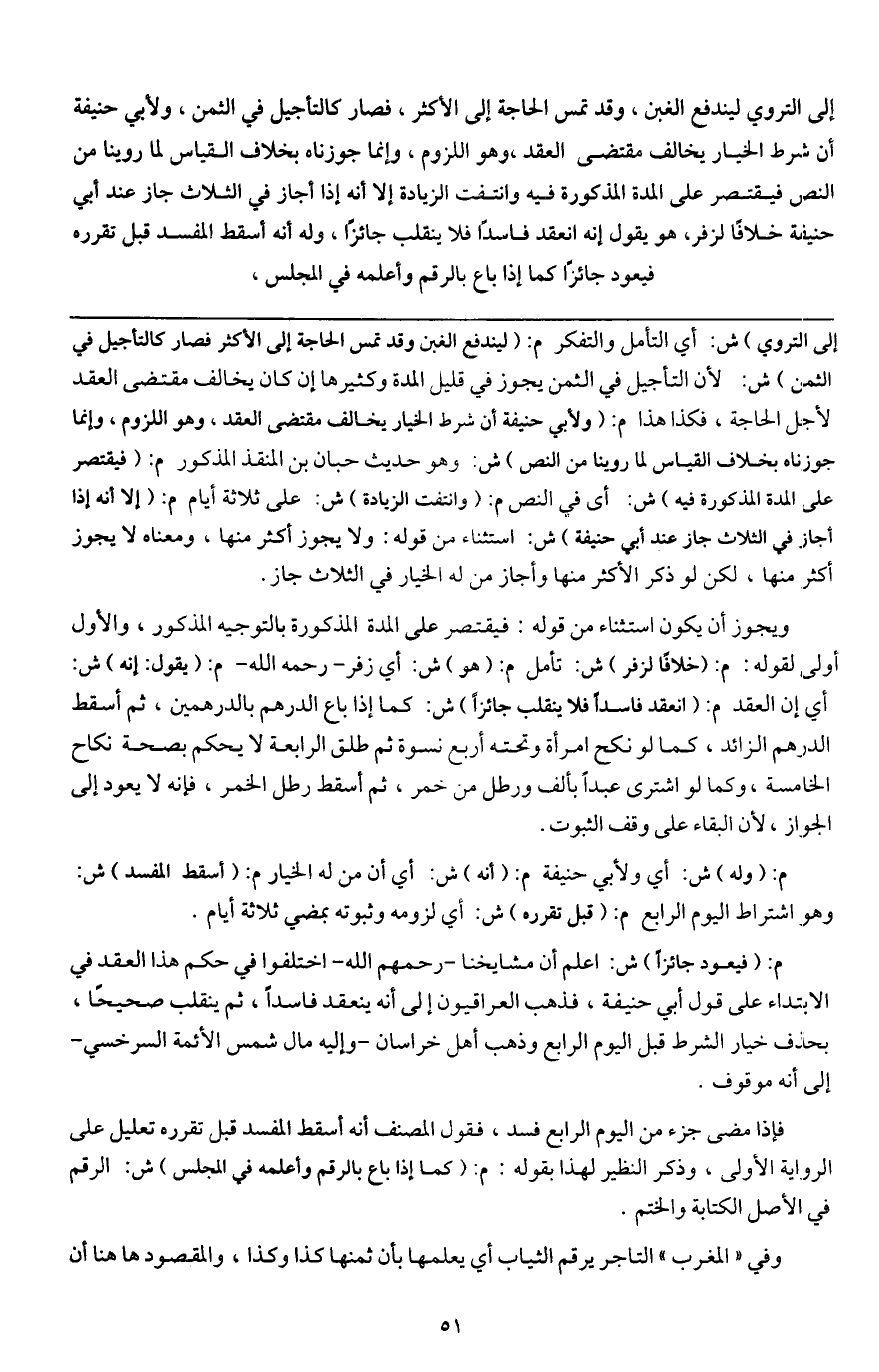 ـــــــــــــــــــــــــــــQإلى التروي) ش: أي التأمل والتفكر م: (ليندفع الغبن وقد تمس الحاجة إلى الأكثر فصار كالتأجيل في الثمن) ش: لأن التأجيل في الثمن يجوز في قليل المدة وكثيرها إن كان يخالف مقتضى العقد لأجل الحاجة، فكذا هذا م: (ولأبي حنيفة أن شرط الخيار يخالف مقتضى العقد، وهو اللزوم، وإنما جوزناه بخلاف القياس لما روينا من النص) ش: وهو حديث حبان بن المنقذ المذكور م: (فيقتصر على المدة المذكورة فيه) ش: أي في النص م: (وانتفت الزيادة) ش: على ثلاثة أيام م: (إلا أنه إذا أجاز في الثلاث جاز عند أبي حنيفة) ش: استثناء من قوله: ولا يجوز أكثر منها، ومعناه لا يجوز أكثر منها، لكن لو ذكر الأكثر منها وأجاز من له الخيار في الثلاث جاز.