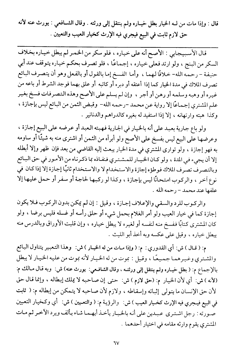 قال: وإذا مات من له الخيار بطل خياره ولم ينتقل إلى ورثته. وقال الشافعي: يورث عنه؛ لأنه حق لازم ثابت في البيع فيجري فيه الإرث كخيار العيب والتعيين