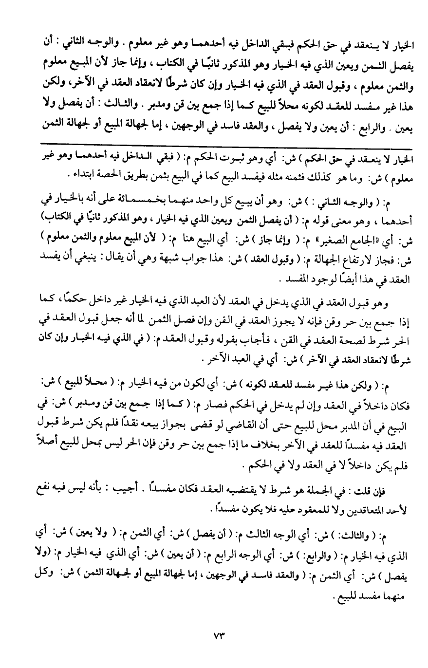 الخيار لا ينعقد في حق الحكم فبقي الداخل فيه أحدهما وهو غير معلوم. والوجه الثاني: أن يفصل الثمن ويعين الذي فيه الخيار وهو المذكور ثانيا في الكتاب، وإنما جاز؛ لأن المبيع معلوم والثمن معلوم، وقبول العقد في الذي فيه الخيار وإن كان شرطا لانعقاد العقد في الآخر، ولكن هذا غير مفسد للعقد لكونه محلا للبيع كما إذا جمع بين قن ومدبر. والثالث: أن يفصل ولا يعين. والرابع: أن يعين ولا يفصل، والعقد فاسد في الوجهين، إما لجهالة المبيع أو لجهالة الثمن