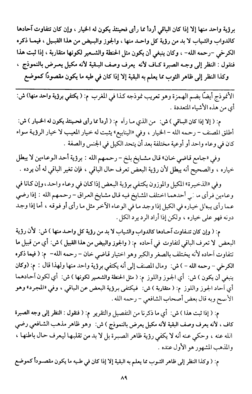 ـــــــــــــــــــــــــــــQالأنموذج أيضا بضم الهمزة، وهو تعريب نموذجه كذا في المغرب م: (يكتفي برؤية واحد منها) ش: أي من هذه الأشياء المتعددة.