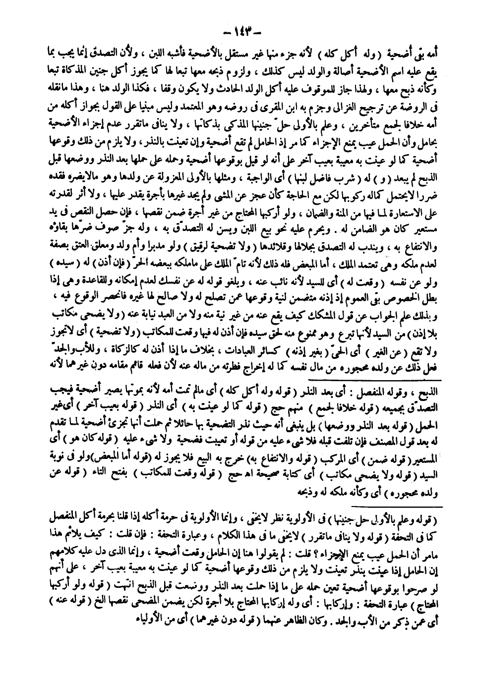 ـــــــــــــــــــــــــــــQقَوْلُهُ: وَعُلِمَ بِالْأَوْلَى حِلُّ جَنِينِهَا) فِي الْأَوْلَوِيَّةِ نَظَرٌ لَا يَخْفَى، وَإِنَّمَا الْأَوْلَوِيَّةُ فِي حُرْمَةِ أَكْلِهِ إذَا قُلْنَا بِحُرْمَةِ أَكْلِ الْمُنْفَصِلِ كَمَا فِي التُّحْفَةِ (قَوْلُهُ: وَلَا يُنَافِي مَا تَقَرَّرَ) لَا يَخْفَى مَا فِي هَذَا الْكَلَامِ، وَعِبَارَةُ التُّحْفَةِ: فَإِنْ قُلْت: كَيْفَ يُلَائِمُ هَذَا مَا مَرَّ أَنَّ الْحَمْلَ عَيْبٌ يَمْنَعُ الْإِجْزَاءَ؟ قُلْت: لَمْ يَقُولُوا هُنَا إنَّ الْحَامِلَ وَقَعَتْ أُضْحِيَّةً، وَإِنَّمَا الَّذِي دَلَّ عَلَيْهِ كَلَامُهُمْ إنَّ الْحَامِلَ إذَا عَيَّنَتْ بِنَذْرٍ تَعَيَّنَتْ وَلَا يَلْزَمُ مِنْ ذَلِكَ وُقُوعُهَا أُضْحِيَّةً كَمَا لَوْ عُيِّنَتْ بِهِ مَعِيبَةً بِعَيْبٍ آخَرَ، عَلَى أَنَّهُمْ لَوْ صَرَّحُوا بِوُقُوعِهَا أُضْحِيَّةً تَعَيَّنَ حَمْلُهُ عَلَى مَا إذَا حَمَلَتْ بَعْدَ النَّذْرِ وَوَضَعَتْ قَبْلَ الذَّبْحِ انْتَهَتْ