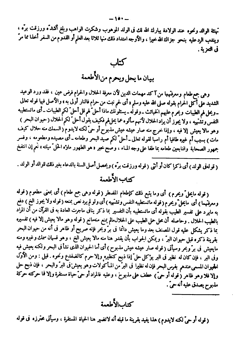 كِتَابُ الْأَطْعِمَةِ (قَوْلُهُ: أَوْ حَيٍّ لَكِنَّهُ لَا يَدُومُ) هَذَا يُفِيدُ بِقَرِينَةِ مَا قَبْلَهُ أَنَّهُ لَا تَضِيرُ هُنَا الْحَيَاةُ الْمُسْتَقِرَّةُ، وَسَيَأْتِي مُحْتَرَزُهُ فِي قَوْلِهِ