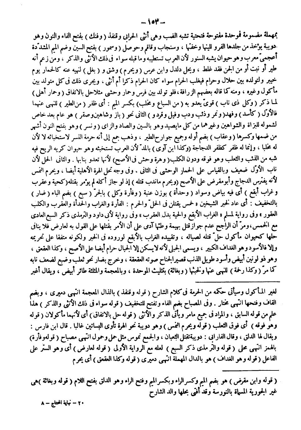 ـــــــــــــــــــــــــــــSلِغَيْرِ الْمَأْكُولِ وَسَيَأْتِي حُكْمُهُ مِنْ الْحُرْمَةِ فِي كَلَامِ الشَّارِحِ (قَوْلُهُ: وَقُنْفُذٌ) بِالذَّالِ الْمُعْجَمَةِ انْتَهَى دَمِيرِيٌّ، وَبِضَمِّ الْقَافِ وَفَتْحِهَا انْتَهَى مُخْتَارٌ.
