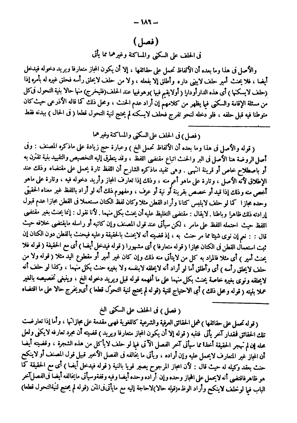 ـــــــــــــــــــــــــــــQ [فَصْلٌ فِي الْحَلِفِ عَلَى السُّكْنَى وَالْمُسَاكَنَةِ وَغَيْرِهِمَا مِمَّا يَأْتِي]